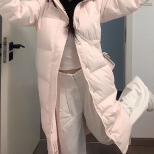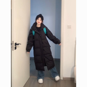 粉色超甜棉服女中长款2025新款韩版宽松学生加厚加长可机洗外套潮