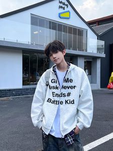 美式假两件外头拼接格子连帽卫衣男女秋冬宽松情侣款开衫外套男