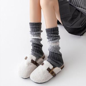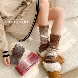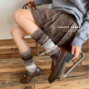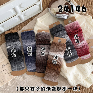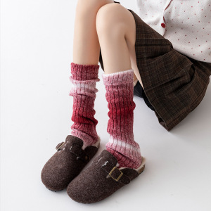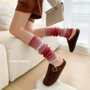 靴尚棉袜套女秋冬加厚长筒袜竖条保暖少女渐变撞色安可拉红堆堆袜