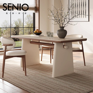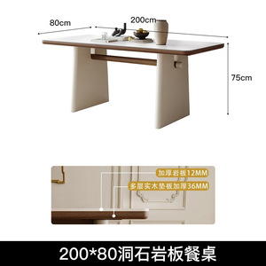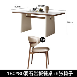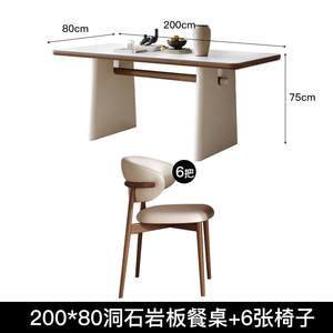 奶油中古风法式餐桌岩板饭桌长方形洞石实木餐桌椅组合家用小户型