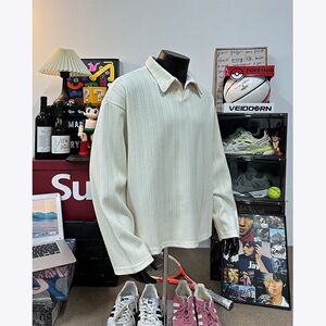 春秋季麦穗美式提花卫衣帅气肌理poloPolo宽松长袖男装翻领现货