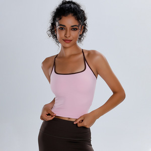 撞色百搭运动背心瑜伽背心裸感固定杯运动文胸防震外穿健身上衣女