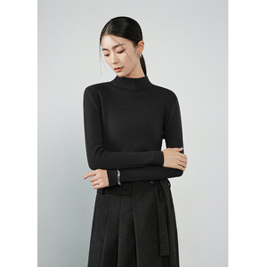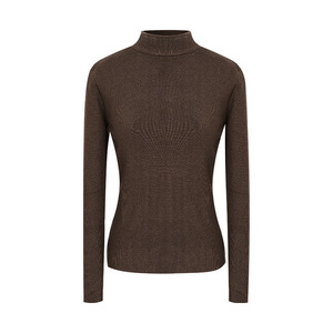 高级感桑蚕丝气质显瘦纯色T桖女2025秋季新款半高领长袖百搭上衣