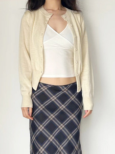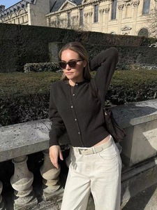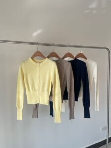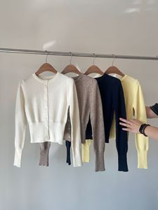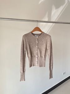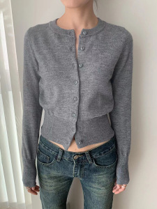 刘雯同款灰色收腰显瘦羊毛针织开衫女秋冬圆领正肩单排扣纯色毛衣