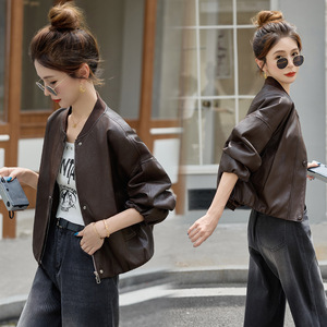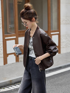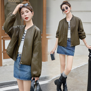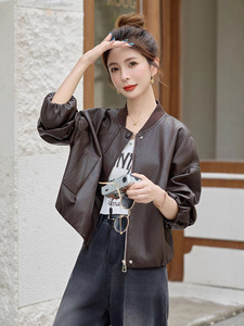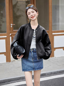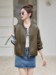 2025秋季新款女装时尚立领拼接皮衣外套女洋气百搭夹克上衣WA2535