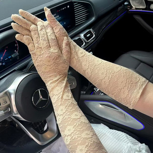 42cm 女士夏季薄款蕾丝手套长款全指 开车骑行防紫外线 防晒网纱