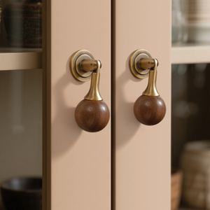 法式轻奢柜门把手衣柜门抽屉中古风胡桃木圆球新中式吊坠拉手大全