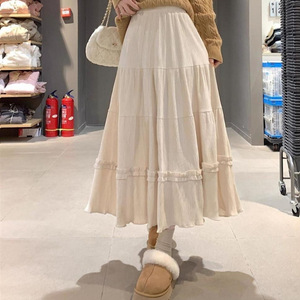 韩系秋冬新款灯芯绒半身裙高腰显瘦2025中长款百褶褶皱蛋糕裙子