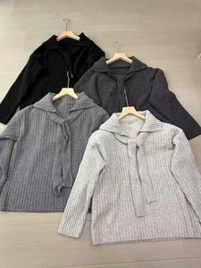 外贸韩系氛围感灰色慵懒风毛衣女2025秋冬新款气质独特收腰上衣