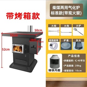 室内无烟气化炉取暖炉家用农村木柴煤炭烤红薯火炉子两用柴火灶