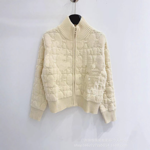 南油高定秋冬新款D家蜜蜂刺绣提花毛衣外套女新款香风立领针织衫