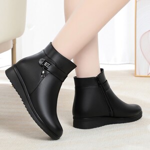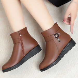 2025秋冬新款大码保暖中老年妈妈鞋靴子侧拉链平底加绒加厚棉鞋女