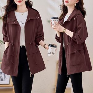 2025春秋新款中长款时尚连帽高级宽松休闲收腰风衣外套显瘦