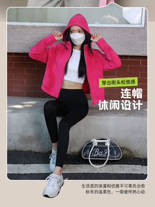 宽松秋冬长袖卫衣lulu同款拉链连帽衣瑜伽服健身服女加绒跑步外套