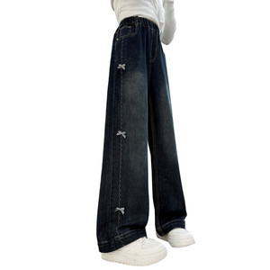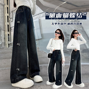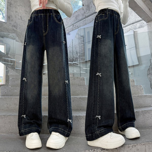 女童牛仔裤春秋2025新款儿童洋气童装直筒裤中大童秋冬窄版阔腿裤