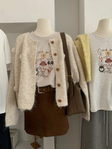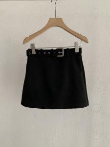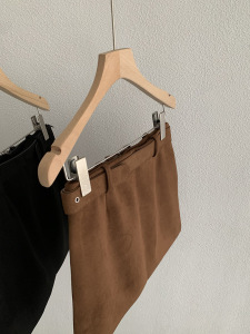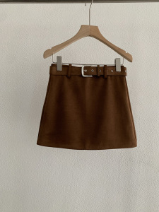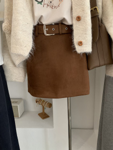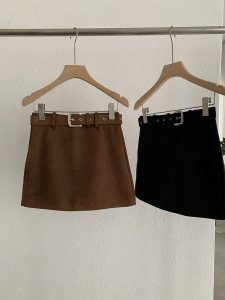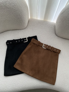 欧玛莱 麂皮绒腰带半身裙女秋季高腰包臀裙防走光A字短裙实拍4490