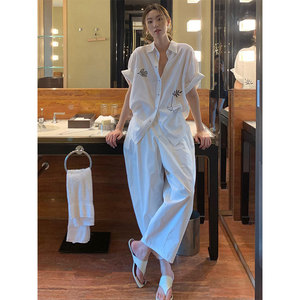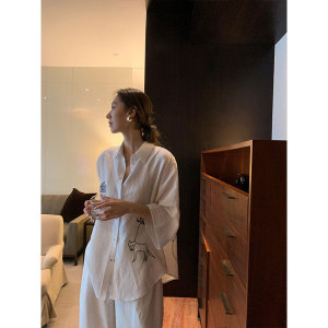 纯欲简约松弛感涂鸦印花睡衣女秋季新款慵懒长袖长裤家居服套装