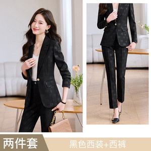 时髦提花高级感西装外套女2025秋新款时尚女神范西服小脚裤套装