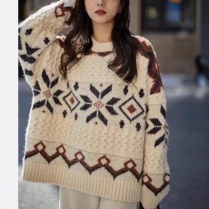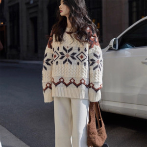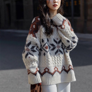 温柔系软糯套头日系毛衣女秋冬新款复古慵懒风宽松显瘦针织衫上衣