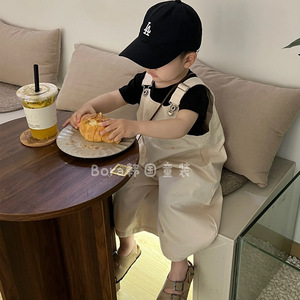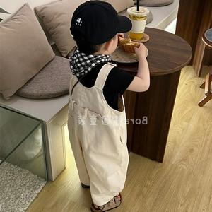 男童裤子男宝宝背带裤薄款儿童夏装2025新款痞帅风洋气白色长裤女