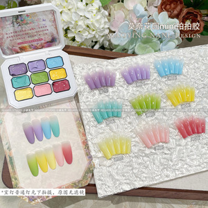 九宫格拍拍胶莫奈花园马卡龙色渐变晕染彩绘免洗甲油胶-小颖美甲
