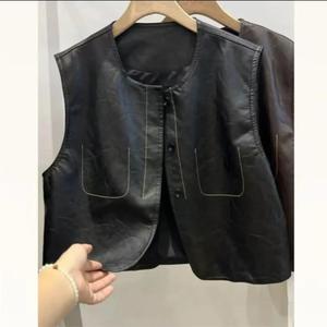 pu皮衣马甲秋季休闲设计感洋气圆领上衣单排扣透气简约宽松马夹