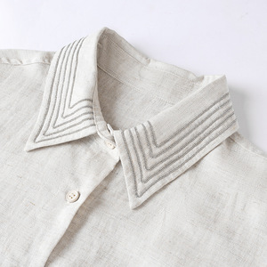 2025年夏季基础款翻领长袖亚麻衬衫女气质百搭设计感廓形复古衬衣
