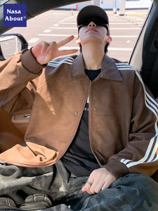 NASA麂皮绒皮外套男秋季2025新款潮牌帅气翻领夹克男士复古高级感