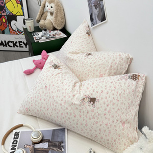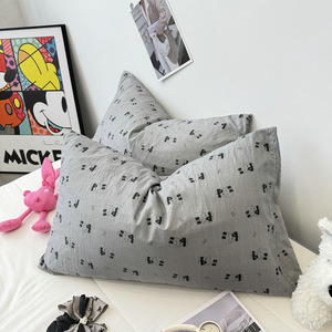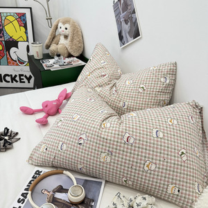 简约格子水洗双层纱单只枕套一对呆萌西高地单品枕套48*74不含芯