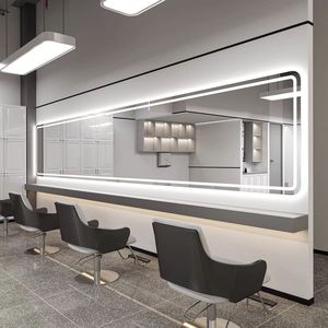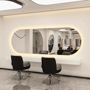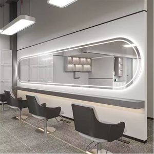 发廊美发店镜台剪发大通带灯横挂网红理发店单面壁挂专用镜子潮款