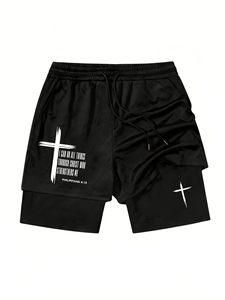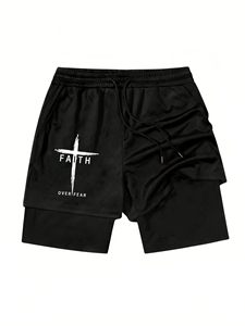 2025夏季新款跨境电商热销潮流短裤男士成人双层运动健身休闲短裤