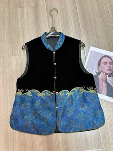 新中式丝绒拼接香云纱精致绣花工艺美感大气立领盘扣秋季无袖背心
