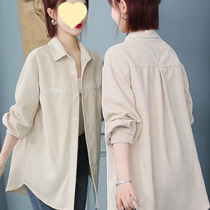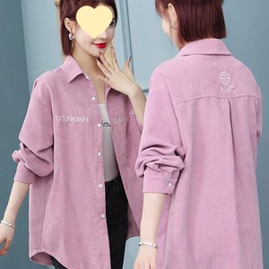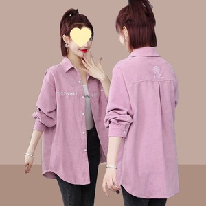 灯芯绒衬衫女外套春秋季女士新款薄款宽松显瘦大码中长款刺绣上衣