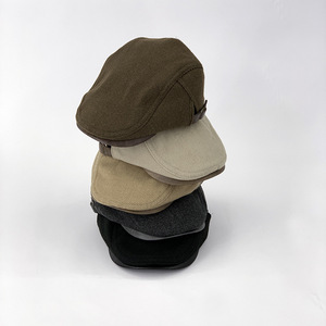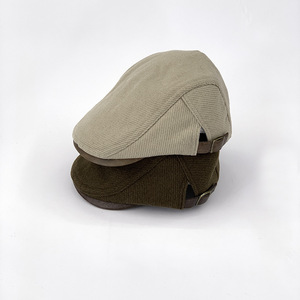 秋季复古街头PU皮帽檐前进帽男女日系斜纹磨毛皮带扣鸭舌帽画家帽
