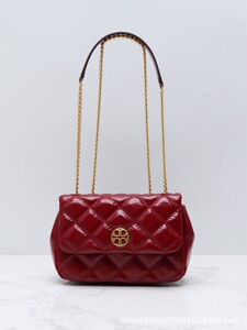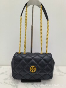 TB新款小香风菱格链条包山羊皮单肩斜挎手提包欧美外贸真皮女包