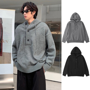 秋冬新款毛衣男情侣慵懒宽松潮牌cleanfit痞帅连帽套头针织衫外套