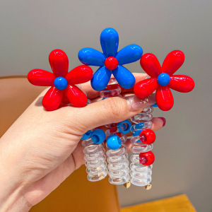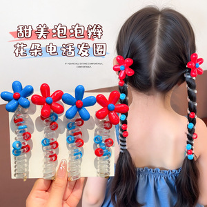 可爱红蓝撞色小花儿童电话线发圈泡泡辫编发神器发饰女童发绳头饰