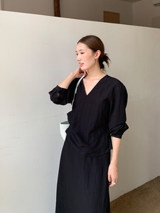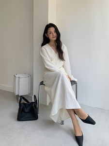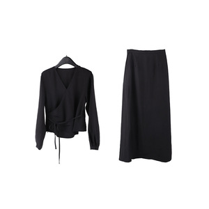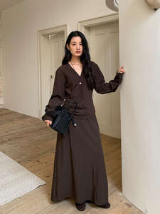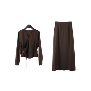 THE MIND交叉感小衫+半身裙两件套2025秋韩版休闲时尚套装T5378Q
