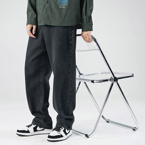 跨境日系男装 2025春季新款简约纯色牛仔裤男水洗宽松直筒长