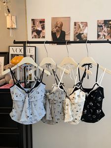 66028#韩系人棉卡通印花撞色背心修身内搭设计感甜辣外穿短款上衣