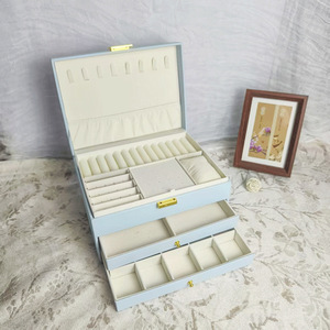 跨境PU皮多层首饰盒极简侘寂风防尘设计北欧风家用分层饰品收纳盒