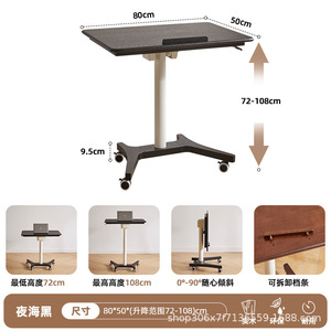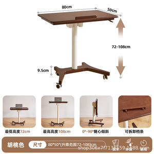 家逸实木升降电脑桌可移动床边桌子办公工作台学习桌家用折叠书桌