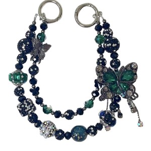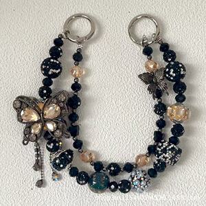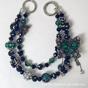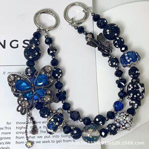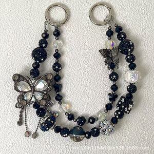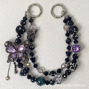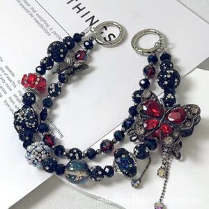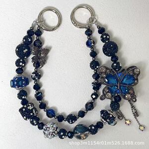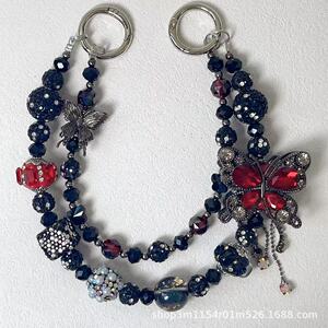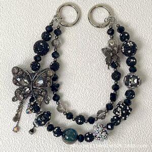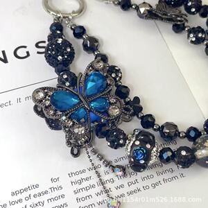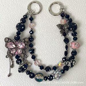 热卖新款双层枪黑蝴蝶手机链时尚百搭富婆链多色盲盒搭娃包包挂链