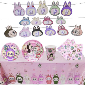 新款卡通拉布布派对主题餐具套装儿童生日派对纸盘纸杯一次性用品