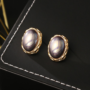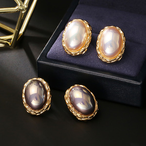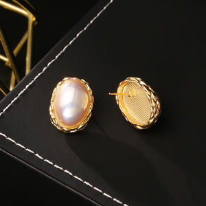 法式复古港风椭圆耳钉高级感精致百搭贝珠耳环精致优雅气质耳饰女