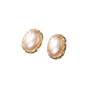 白色椭圆贝珠耳环(S925银针)