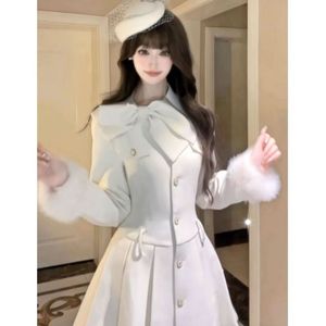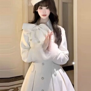法式名媛千金小香风蝴蝶结长袖连衣裙秋冬新款气质收腰短a字裙女
