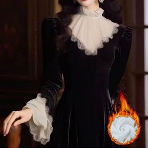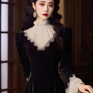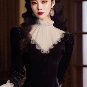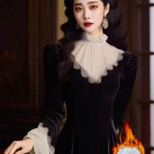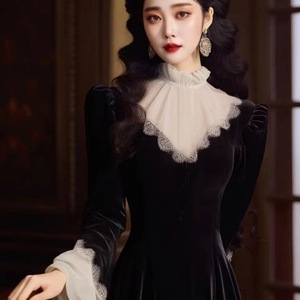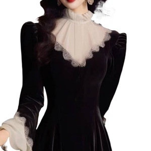 赫本风新新中式法式立领长袖千金风感气质名媛连衣裙秋冬