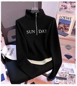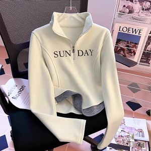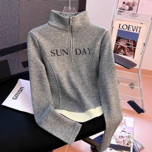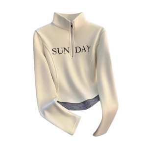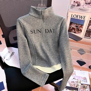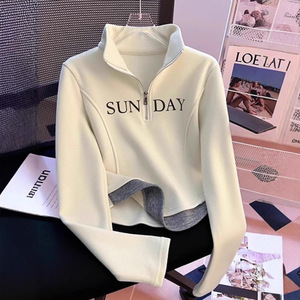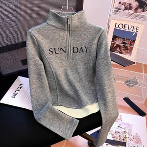 半拉链立领卫衣女秋季2025新款修身短款小个子上衣假两件长袖t恤
