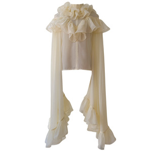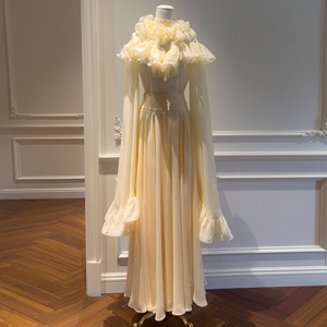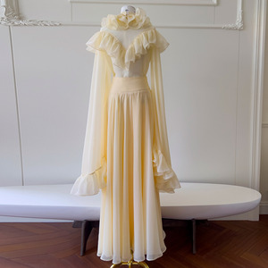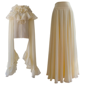 荷叶边立领喇叭袖长袖套头上衣抽褶半身长裙两件套装71460+51363